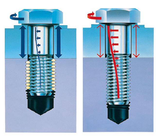 μG=變小且連續的螺紋摩擦力導致了一個增強了的預壓力Fv τt=無螺紋部分的扭轉應力的衰減