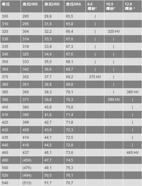 硬度轉換表
